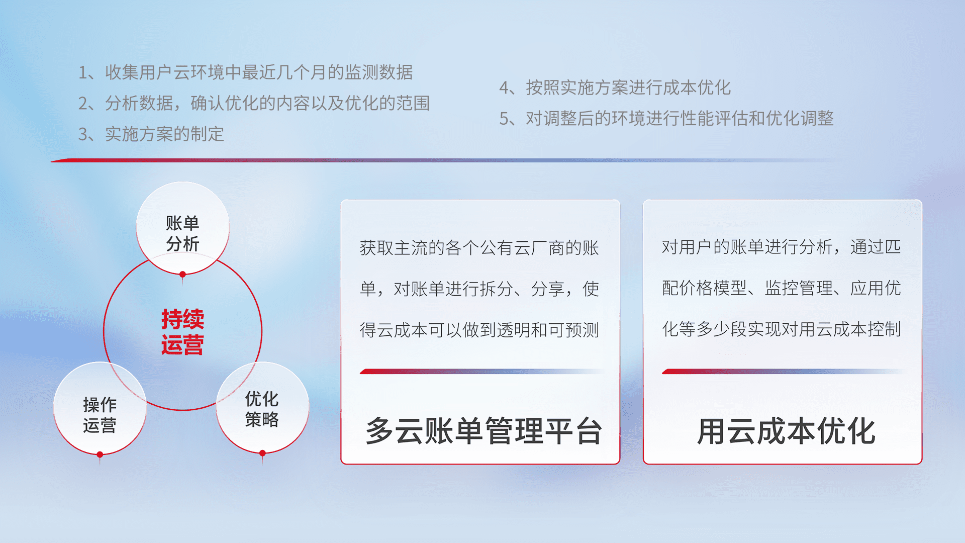 运用智能化工具分析云资源,,提供日常费用可视化工具,,自动账单拆分,,,,成本优化云上费用,,,,降本增效。。。。